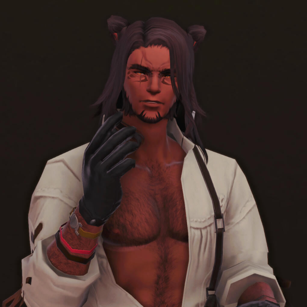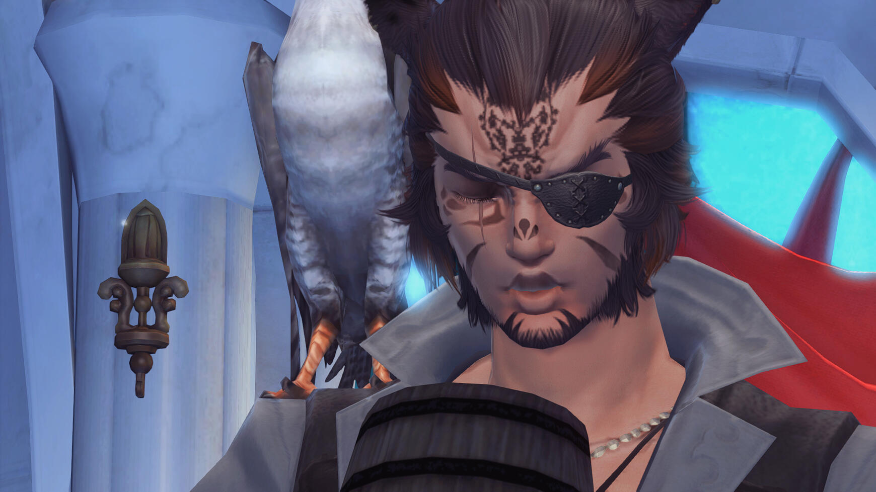 After a long and storied history of piracy and conquest across Dravanian skies, Rex has finally retired, formally retiring his title within the Dahlia Fleet and relinquishing captaincy of the Skyship Lammergeier to Bonny Swan, his adopted Roegadyn daughter. No longer tied to his crew beyond friendship and occasional catch-ups, Rex now flies the open sky in a small skycraft he's named Pledged Shore. While days of conquest and pillaging are behind him, Rex picks up odd mercenary jobs here and there, and occasionally offers gunblade lessons to interested parties.